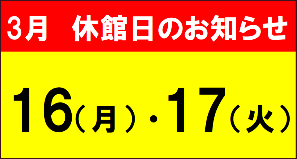 【休館日】3月16日(月)・17日(火)
