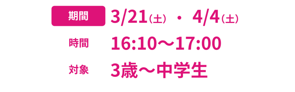日曜、3/15、16、17、4/29、30、5/1~7、29~31